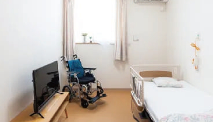 快適性と安全性を両立した居室には、ナースコールを完備。万一の際にもスタッフが迅速に対応いたします。落ち着いた空間で、安心して毎日をお過ごしいただけます。